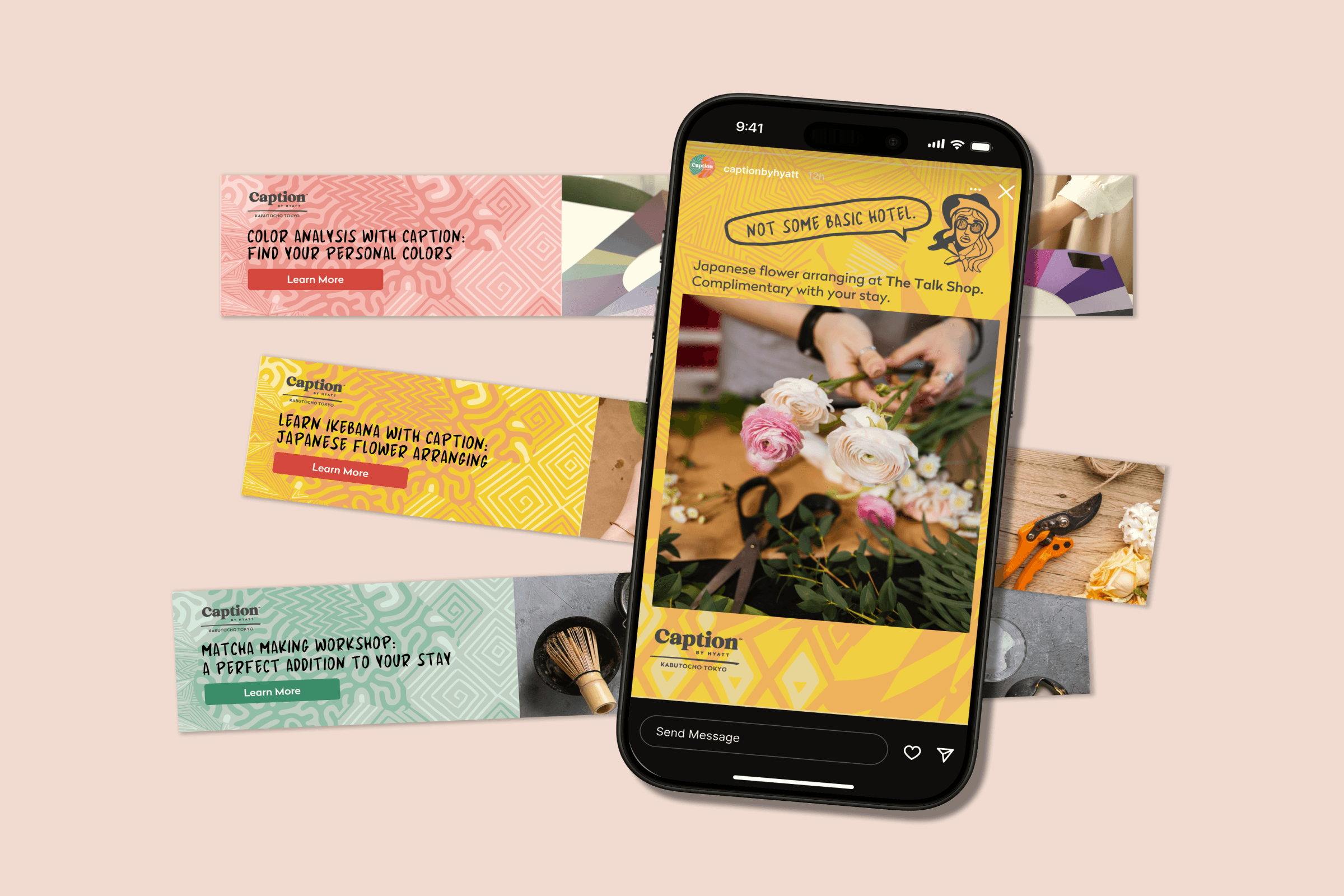 Analyzing market trends and designing ad mockups to guide Caption by Hyatt Kabutocho’s communication strategy.